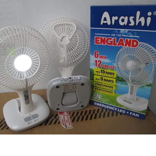 Arashi ar 38 england kipas angin meja portable with led 12 smd lampu emergency and powerbank 6 inch kipas multifungsi dengan fungsi kipas angin yang dapat membantu menyejukan ruangan yang panas dan pengap karena mati lampu dan juga dilengkapi emergency. Di iprice anda bisa mengecek daftar harga kipas angin regency dengan variasi harga mulai dari idr rp 88 900 hingga idr rp 6 475 000. Nada shop 05. Turbo wall fan cfr 5889.