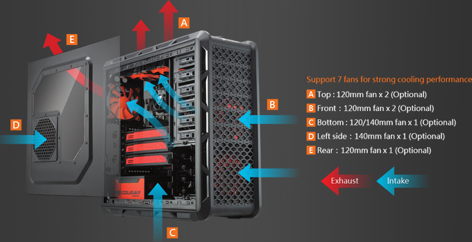 The intake exhaust direction should go front to back and bottom to top. Back middle front etc. Generally it s best to have as few obstacles as possible between the intake fans on the front of the case and the exhaust fans on the rear and top of the case. Fan support up to 3 120 2 140 mm intake fans 2 140 mm included up to 2 120 140 mm top fans up to 1 120 140 mm exhaust fan 140 mm included front intake panel type part mesh if you dislike the traditional tower shape of pc cases then opting for cube cases is a genuine option.